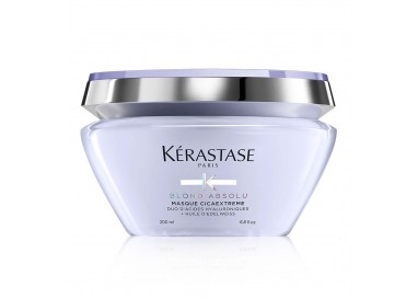 Maschera riparatrice post decolorazione per capelli sensibilizzati, schiariti o decolorati. Rimpolpa e rigenera la fibra capillare prevenendo la formazione delle doppie punte e rottura lasciando i capelli con un aspetto più sano. Con acido ialuronico e Olio di Stella Alpina garantisce un'idratazione profonda e un'ottima pettinabilità. Kerastase Blond Absolu Masque Cicaextreme lascia i capelli biondi levigati, forti e brillanti.