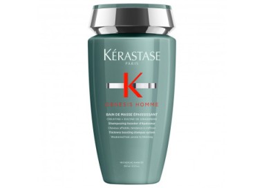 La formula dello shampoo Kérastase Genesis Homme Bain de Masse Épaississant è arricchita con cheratina ed estratto di radici di zenzero. Aumenta la densità dei capelli e dona un effetto corposo immediato.