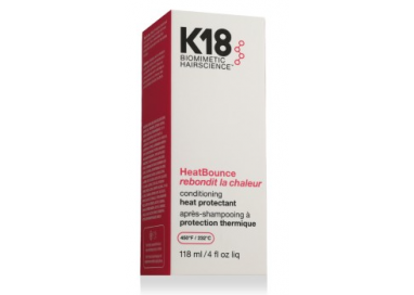 l K18 HeatBounce™ è un termoprotettore condizionante senza risciacquo che protegge i capelli dal calore fino a 232C°. Grazie alla sua tecnologia brevettata Resilcore. La formula penetra in profondità per proteggere dalla cuticola alla corteccia, riducendo la rottura fino all'85% dopo l'asciugatura con il phon. Districa, ammorbidisce e rivitalizza tutti i tipi di capelli senza appesantirli ed è adatto anche alle extension.