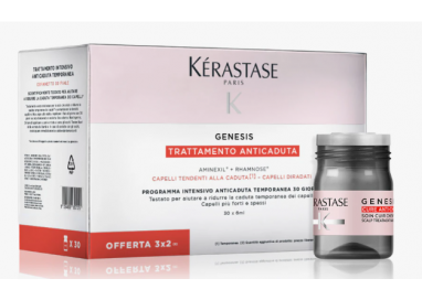 Trattamento per il cuoio capelluto femminile contro il diradamento dei capelli. Questo programma capillare ridensificante e infoltente migliora l'attività follicolare rendendo i capelli più spessi.